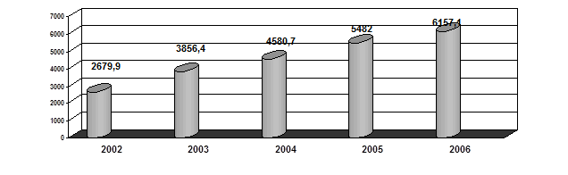 В 2006 году финансовое обеспечение средствами ОМС в расчете на 1 жителя Республики Башкортостан увеличилось на 13,3 % к показателю 2005 года (рис. 5).