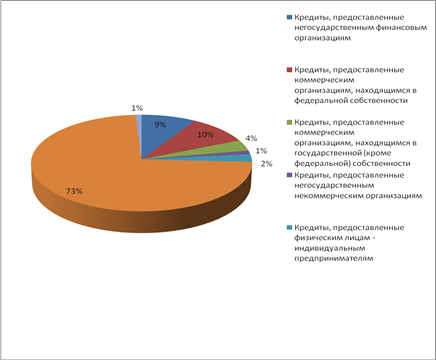 Кроме того, в структуру кредитного портфеля больше не входят кредиты предоставленные некоммерческим организациям, находящимся в федеральную собственность, а также кредиты некоммерческим организациям, находящимся в государственной (кроме федеральной) собственности. Более наглядно структура кредитного портфеля банка представлена на рис. 2.2.