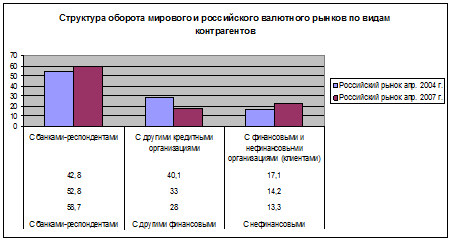 Таблица 4. Структура оборота мирового и российского валютного рынков по видам контрагентов, %