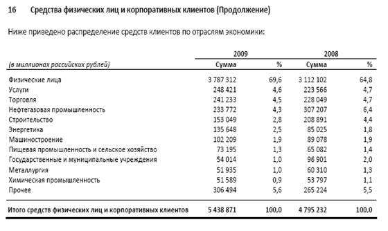 Как видно из примечания банк проявлял высокую активность на межбанковском рынке до кризисного периода. В 2009 году наблюдается снижение суммы привлеченных займов, так как банк начал погашать долги по ранее привлеченным займам.