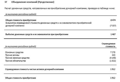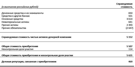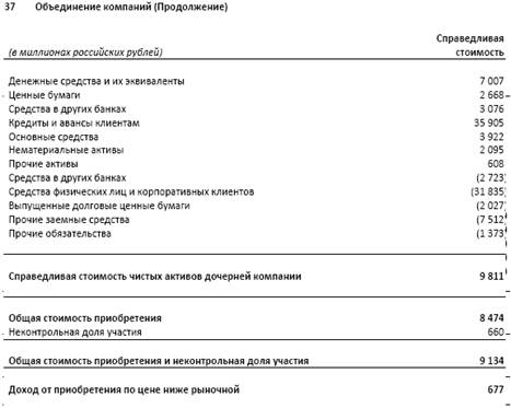 В таблице выше отражена информация об активах и обязательствах приобретенных Сбербанком в результате покупки ОАО "БПС- Банка". Так как государство оказывает сильное влияние на политику Сбербанка, банк выкупил ОАО "БПС - Банк" с целью поддержания стабильности банковской системы РФ.