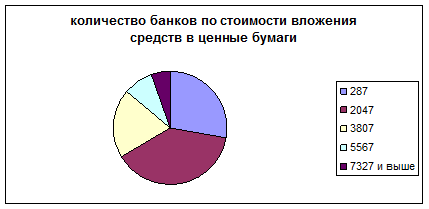 Рис. 2 Количество банков по стоимости вложения в ценные бумаги