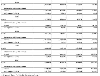 - общий размер кредитования банками отраслей экономики и населения с выделением краткосрочного и долгосрочного кредитования;