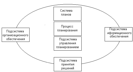 Она полностью включает систему планов, процесс планирования, подсистему управления планированием и частично — три других элемента: подсистемы организационного обеспечения, информационного обеспечения и принятия решений.