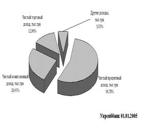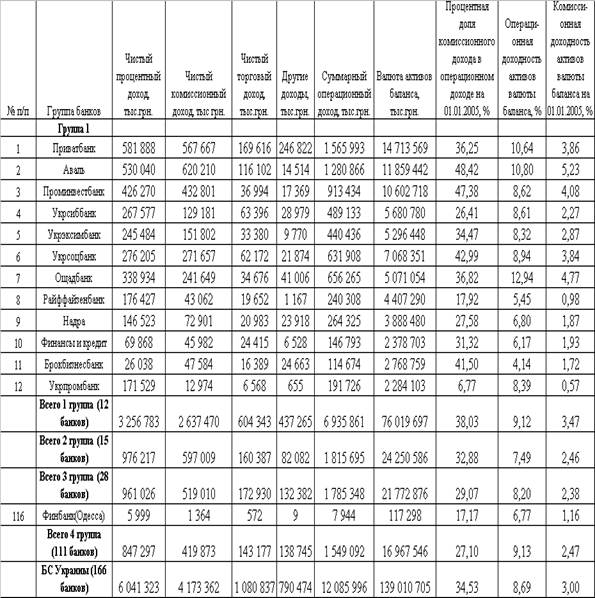 Таблица 2.1 – Структура доходов и характеристики комиссионных доходов в банковской системе Украины по состоянию на 01.01.2005