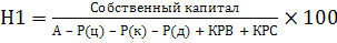 Первым коэффициентом является коэффициент достаточности капитала (Н1). Расчёт Н1 можно представить по формуле (1).