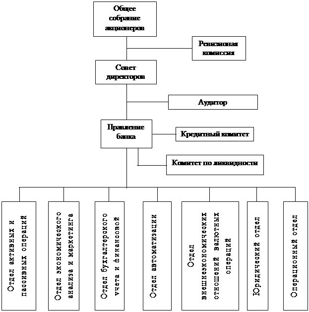 – Совет директоров банка – отвечает за общее руководство банка, утверждает стратегические направление его деятельности. В состав правления входят высшие руководители банка: председатель банка, его заместители, руководители важнейших подразделений банка. Правление банка составляют из сотрудников, нанимаемых владельцами банка для организации работы. Также сюда могут входить лица, владеющие полностью или частично данным кредитным учреждением.