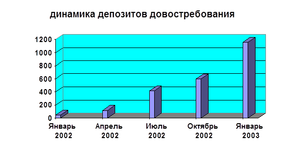 В последние годы наиболее приемлемым спросом являлись срочные депозиты из-за нестабильности экономики. Более того, внутри широкой категории срочных и сберегательных депозитов, высоко доходные сберегательные вклады, особенно депозиты денежного рынка, доходы вкладчиков по, которым не регулируются и изменяются вместе с изменениями рыночных условий, росли быстрыми темпами за счет низко доходных сберегательных депозитов. Из этого следует, что депозиты до востребования, значительно сократились.