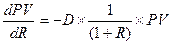 Нетрудно проверить, что дюрация и текущая стоимость потока платежей связаны зависимостью: