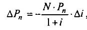 где — изменение рыночной стоимости ссуды, вызванное изменением процентной ставки, или чувствительностью; N— продолжительность ссуды; Рп — рыночная (переоцененная) стоимость кредита на момент расчета; — ожидаемое изменение процентной ставки; i- процентная ставка на момент расчета. (формула (2) показывает степень зависимости рыночной стоимости ссуды от изменений на денежном рынке, т.е. чувствительность инструмента. Последняя во многом зависит от срока, а также от современной стоимости действующей в данный момент процентной ставки.