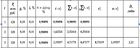 Таблица 1. Расчет продолжительности долгосрочных ссуд