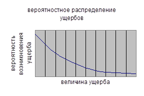 из графика видно, распределение ущербов имеет форму убывающей кривой, это говорит о том, что катастрофические риски имеют наименьшую вероятность возникновения, но приносят наибольшие ущербы.