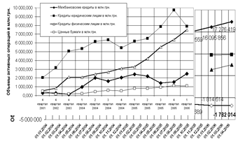 На рис. 2.10 -2.14 приведены характеристики основных активных операций и кредитного портфеля в АКБ „Приватбанк”.
