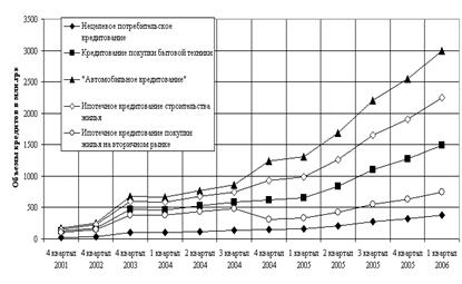 Рис.2.12. Динамика объемов и структуры кредитования физических лиц в АКБ «Приватбанк»