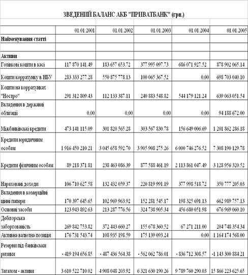 Таблица Б.1 Баланс АКБ „Приватбанк” за 2000 – 2004 года