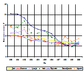 Важно подчеркнуть тот факт, что снижение уровня процентных ставок в 1999 году значительно оживило рынок ипотеки и соответственно возрастания процентных ставок на протяжении 2000 года ослабило темпы возрастания (графики рис.1.7). Это ярко свидетельствует об уменьшение разрыва между общим объемом предоставленных жилых кредитов и чистыми жилыми кредитами.