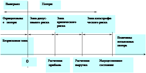 В зависимости от величины потерь выделяют определенные зоны или области риска (Рис. 2.16.).
