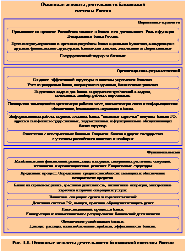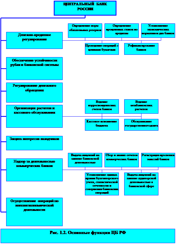Банковскую систему РФ образуют Центральный банк России, Банк внешней торговли РФ, Сберегательный банк РФ, коммерческие банки разных видов, а также другие кредитные учреждения, получившие лицензию на осуществление отдельных банковских операций. Для финансирования отдельных целевых республиканских, региональных и иных программ могут создаваться специальные банки в порядке и на условиях, предусмотренных законодательными актами РФ.