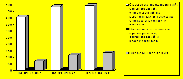 В основе этого процесса лежала объективная тенденция очищения рынка банковских услуг от финансово нестабильных кредитных организаций, а также ужесточение критериев регистрации и лицензирования банковской деятельности. Кроме того, влияние оказал наметившийся процесс консолидации кредитных учреждений путем их слияния и преобразования малых банков в филиалы крупных. На рис.1.4. представлена динамика распределения средств предприятий и населения в банках РФ до кризиса 1998 г.