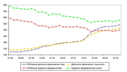 Значительная часть притока средств населения пришлась на средне- и долгосрочные ресурсы (депозиты со сроком свыше полугода (рис.1.13 _)).