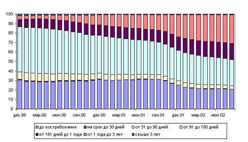 Рис.1.14. Срочная структура депозитов населения (на конец месяца, в %)
