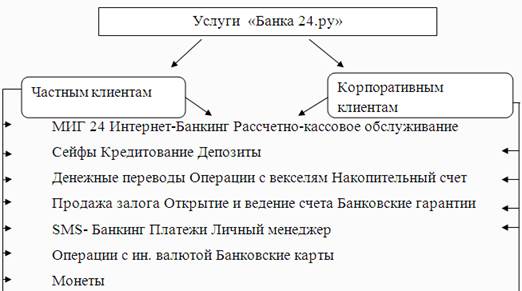Рисунок 1 – Услуги, предоставляемые ОАО «Банк 24.ру»