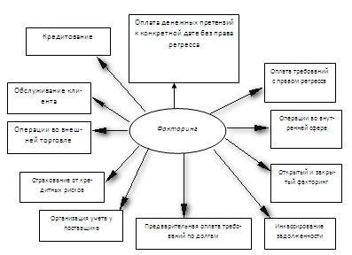 Факторинг (от англ. factor – агент, посредник) является разновидностью комиссионной операции, сочетающейся с кредитованием оборотного капитала поставщика, и связан с переуступкой факторинговой компании неоплаченных долговых требований (счетов-фактур и векселей), возникающих между контрагентами в процессе реализации товаров и услуг. В настоящее время в мировой практике факторинг развился в универсальную систему обслуживания поставщика, включающую бухгалтерское, информационное, сбытовое, страховое, кредитное и юридическое обслуживание.