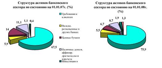 Как видно из таблицы 3, показатели адекватности собственного капитала банковского сектора по состоянию на 01 января 2008 года не изменились и составили k1 – 0,11 (при нормативе - 0,06) (для банка, участником которого является банковский холдинг норматив - 0,05), k2 – 0,14 (при нормативе -0,12) (для банка, участником которого является банковский холдинг норматив - 0,10).