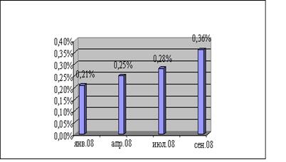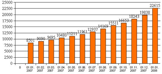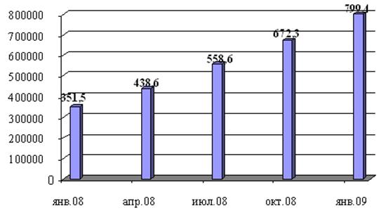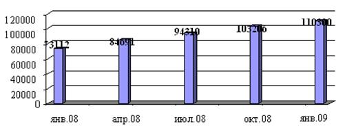 рис. 2.3. - Динамика прироста клиентов физических лиц с 01 января 2008 года по 01 января 2009 года, (тыс. руб.)