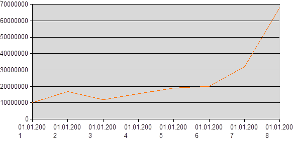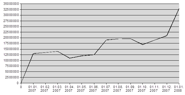 рис. 2.2. - Динамика прироста клиентов юридических лиц с 01 января 2008 года по 01 января 2009, (тыс. руб.)