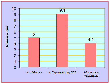 Рис. 9. Сравнение периодов рассмотрения кредитной заявки в Стромынском отделении Сбербанка России и по г. Москва в 2009 г.