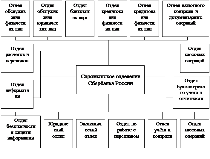 В Стромынском отделении Сбербанка России имеются следующие структурные подразделения, представленные на рис. 2.