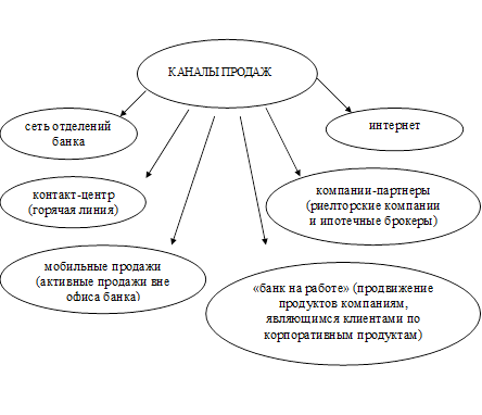 Развитие каналов продаж является ключевым инструментом завоевания доли на региональном рынке ипотечного кредитования. Выделяют несколько основных каналов продаж ипотечных продуктов (рисунок 3.3).