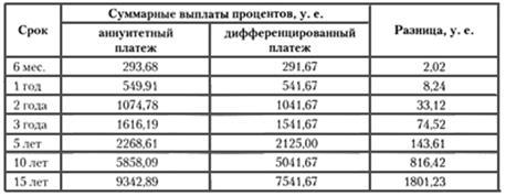 Для решения задачи подсчитаем суммарные выплаты процентов при погашении кредита двумя упомянутыми выше способами (для одинаковой суммы кредита, но для разных сроков и ставок). Результаты вычислений представлены в таблицах.