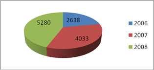 Кредитный портфель за 2 прошедших года вырос в двое. В 2007 г. на 53%, что составило 4033 млрд. руб, в 2008 г. на 31 % - 5280 млрд. руб.