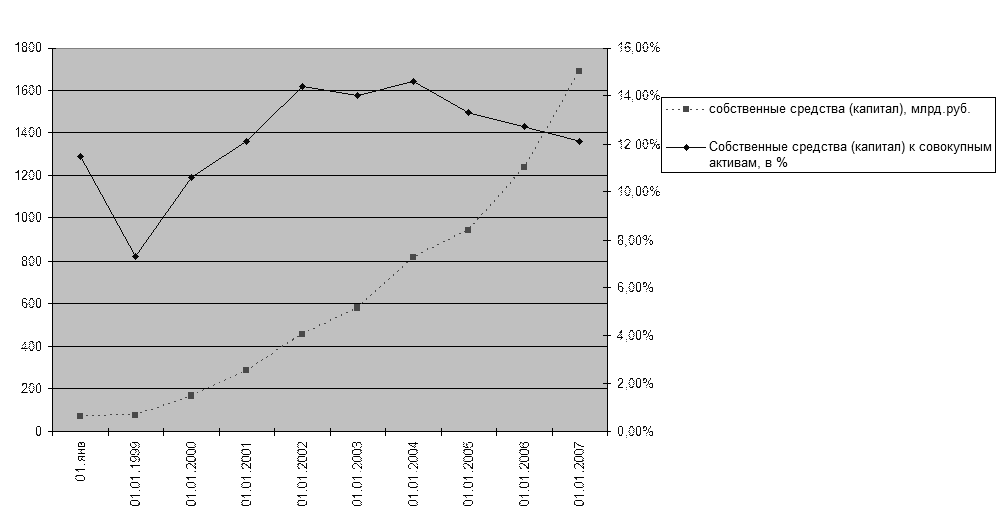 Диаграмма 2. Динамика доли капитала в сумме активов банковской системы РФ.