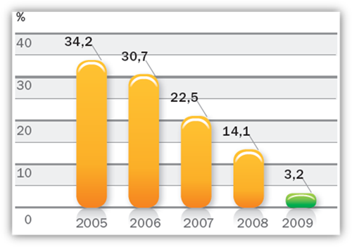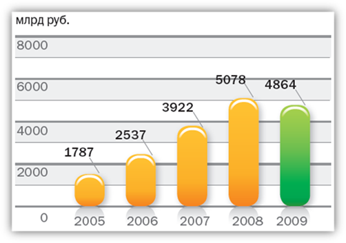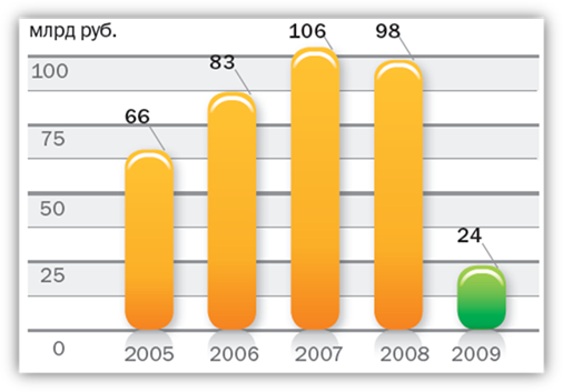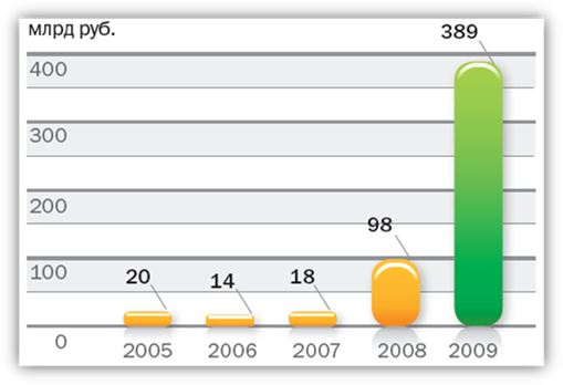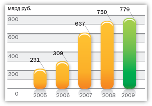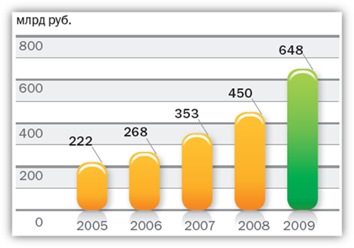 Основная статья отчета о финансовом положении - кредиты и авансы клиентам нетто - снизились на 4,2%. Снижение произошло за счет значительного роста резервов под обесценение кредитного портфеля в 2,9 раза — до 579,8 млрд. руб., в то время как кредитный портфель до вычета резервов вырос в 2009 году на 3,1%.