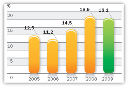 Банк будет поддерживать рентабельность капитала на уровне не ниже 20%, что соответствует росту прибыли к 2014 году в 2,5 — 3 раза. Опережающий рост розничных рынков и реализация новых конкурентных преимуществ в области обслуживания населения создадут предпосылки для дальнейшего роста доли розничного бизнеса в активно-пассивных операциях Банка и сближения этого показателя с долей операций с корпоративными клиентами. Стабильно высокая эффективность банковской деятельности, оптимизация структуры и поступательный рост абсолютной величины финансового результата, эффективное управление административно-хозяйственными издержками, высокая лояльность клиентов окажут позитивное влияние на рыночную капитализацию и инвестиционную привлекательность Банка, позволят ему уверенно занять достойное место среди ведущих финансовых институтов мира.