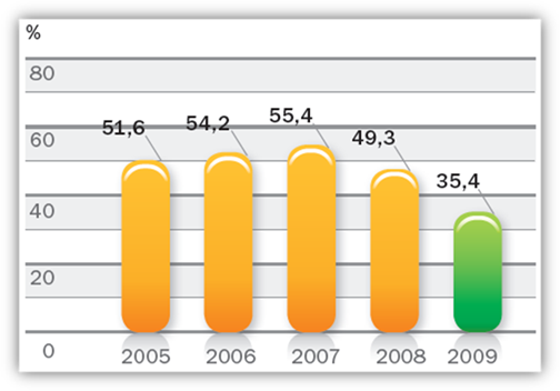 Расходование ресурсов на внутренние нужды Банк будет производить в соответствии с намеченными целевыми программами с учетом своих текущих финансовых возможностей и при условии выполнения контрольных показателей эффективности деятельности в каждом отчетном периоде. Банк будет контролировать объем и удельный вес операционных расходов с целью обеспечения снижения показателя отношения затрат к чистому операционному доходу до уровня не выше 40% по РСБУ.