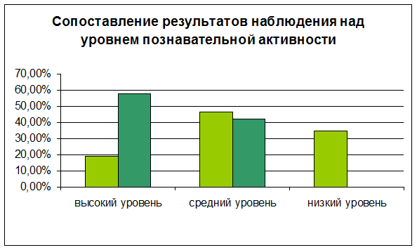 Результаты наблюдений показаны в виде диаграмм ранее. На данном этапе работы мы представим сводную диаграмму итогов наблюдений до применения проблемного обучения и после него: