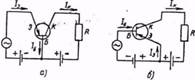 Затем рассматривается использование транзистора как усилителя мощности. При этом рассматривают два случая: включение транзистора по схеме с общей базой (рис. 3, а) и общим эмиттером (рис. 3, б). Схему с общим коллектором не рассматривают, поскольку она мало чем отличается по действию от схемы с общим эмиттером. Поясняют распределение силы тока между эмиттером, базой и коллектором.