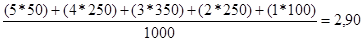 Например, при определении популярности видов спорта было опрошено 1000 человек. Гимнастика "собрала" следующие оценки: очень нравится (5) - 50 человек, правится (4) - 250, безразличен (3) - 350, не нравится (2) - 250, очень не нравится (1) - 100. Значит, "средняя степень популярности" гимнастики может быть вычислена следующим образом: