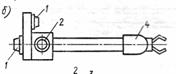 Механизмы рук, работающих в угловой системе координат, выполняются в виде шарнирно закрепленного рычага, на переднем торце которого установлен ориентирующий механизм кисти 4, а на заднем — приводы ориентирующего механизма 1. На корпусе руки устанавливаются цапфы вращения руки 2. Механизмы рук, работающих в цилиндрической, сферической и прямоугольной системах координат, выполняют в виде направляющей прямоугольной или корытооразной формы, которая базируется на опорах в корпусе руки. При расположении привода на заднем торце направляющей руки его связь с ориентирующим механизмом осуществляется через параллельно или соосно расположенные трансмиссионные валы. Такая компоновка по сравнению с компоновкой с расположением привода на корпусе руки характеризуется повышенным моментом инерции относительно оси поворота и большими габаритами руки, но обеспечивает максимальную простоту конструкции.