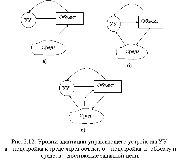 2. Изменение работы управляющего устройства УУ при изменении состояния среды под влиянием действий объекта (б).