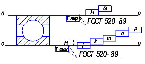 G7/l0 – отверстие G7 соединяется с наружным кольцом L0/k6 – внутреннее кольцо подшипника 0 класса точности соединяется с валам k6а 0 класса точности.