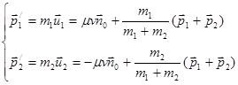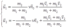 - приведенная масса образовавшихся частиц. Скорости частиц после распада в Ц-системе: