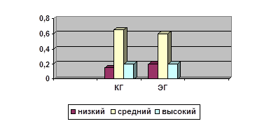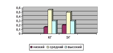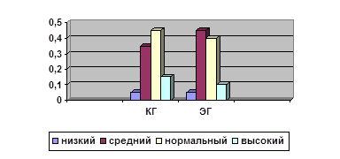 1. В контрольной и экспериментальной группе преобладают преимущественно дети со средними показателями.