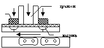 Заг-ка подается в матрицу, прочно удерживается. Внутренняя полость пуансона соответствует форме необходимой высадки - он формирует головку.