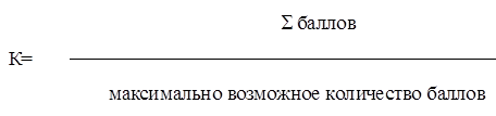 Каждый из диагностических критериев оценивался коэффициентом (К1, К2, К3), который вычисляется по формуле: