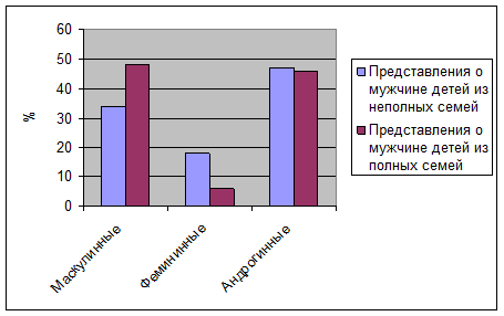 Анализируя гендерные представления о мужчине детей из полных и неполных семей, следует отметить, что дети из полных семей в большей степени осознают те качества, которыми должен обладать мужской пол.